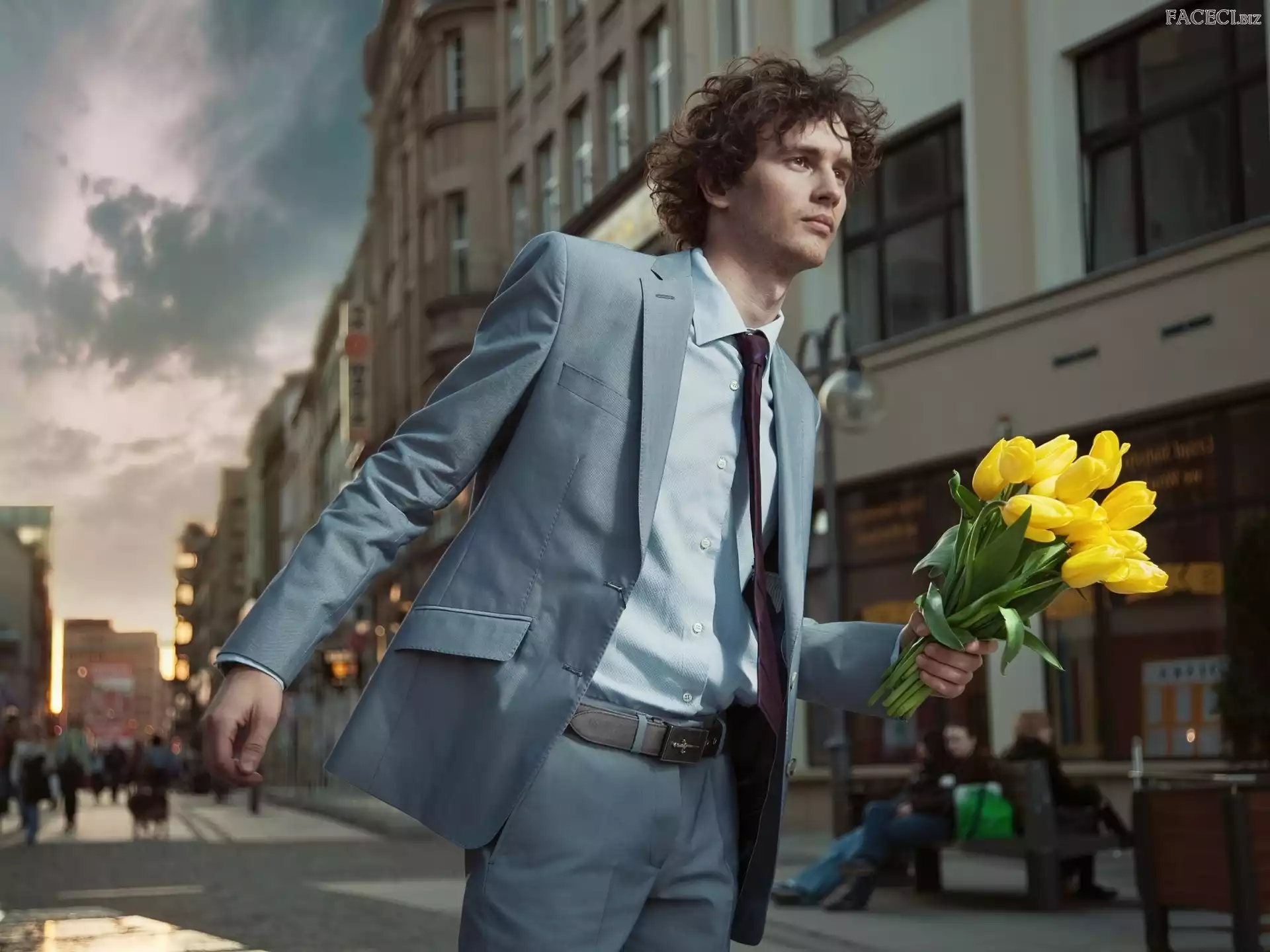 Mężczyzna, Tulipanów, Miasto, Bukiet - faceci.biz
