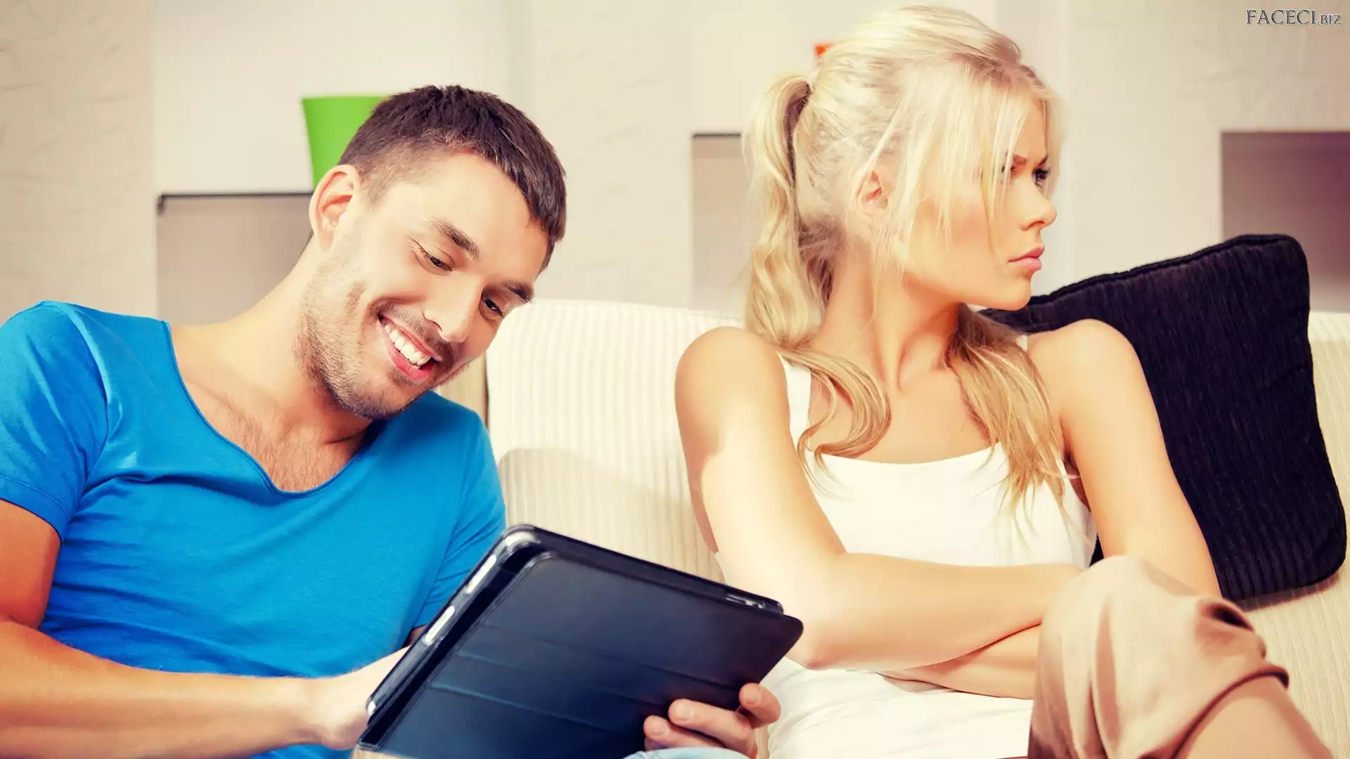 Tablet, Kobieta, Mężczyzna, Obrażona - faceci.biz